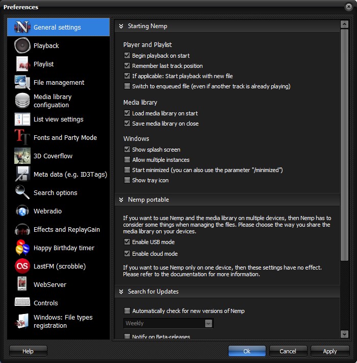 The behavior of Nemp can be customized in many ways. In the course of time, requests came in again and again whether one could not do this or that. Much of this was then implemented and has gradually increased the amount of setting options.