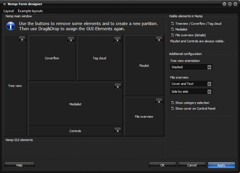 In the last step you can hide some elements. However, changes to these settings will be visible only in the real Nemp window. Furthermore, you can configure some elements: