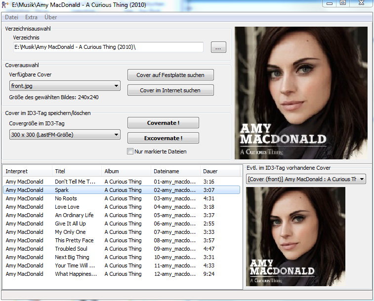 Ein kleines Tool, das in den ID3-Tag von mp3-Dateien das Cover einbindet, damit die Dateien im Windows-Explorer oder einigen mobilen mp3-Playern mit dem Cover angezeigt werden und nicht mit dem Standard-Icon.