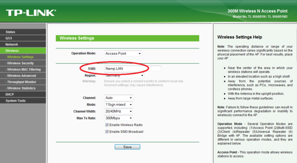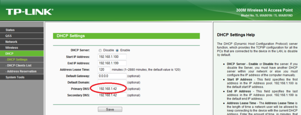 Für den Nemp Webserver benötigen wir einen Access Point mit DHCP mit Adress-Reservierung für einzelne Geräte und der Möglichkeit, den DNS-Server einzustellen. Auch relativ günstige wie der TL-WA801ND bieten diese Funktionen.